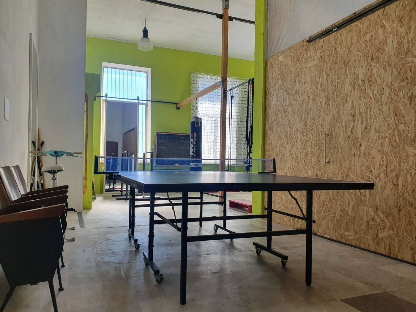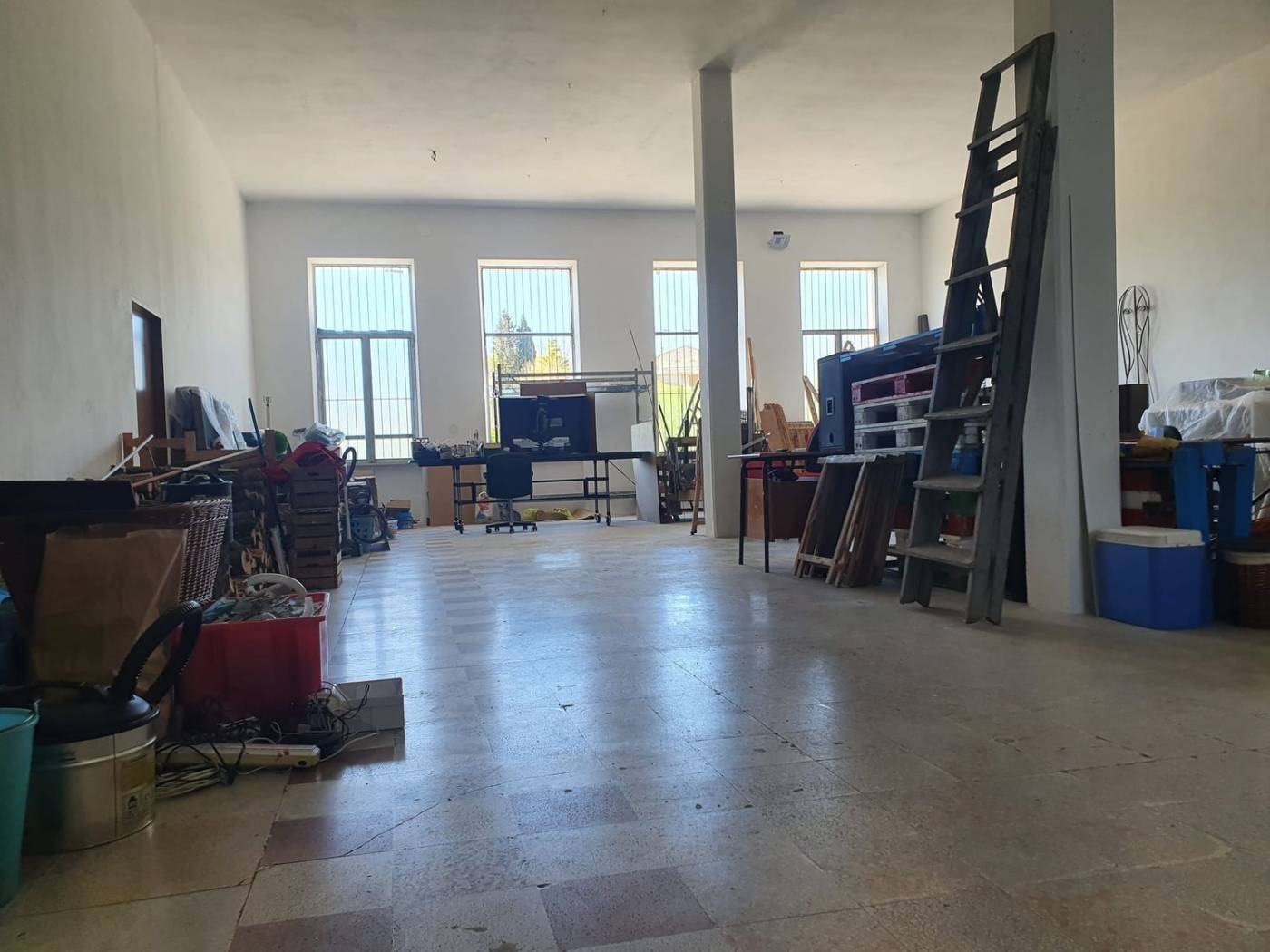 Il capannone di 260 mq e stato ridefinito dagli attuali proprietari, parte ad uso magazzino e laboratorio artistico, dove hanno preso vita la maggior parte del design decorativo dell'appartamento, con bagno di servizio, parte adibito ad uso palestra, con specchi e attrezzi ad uso professionale.