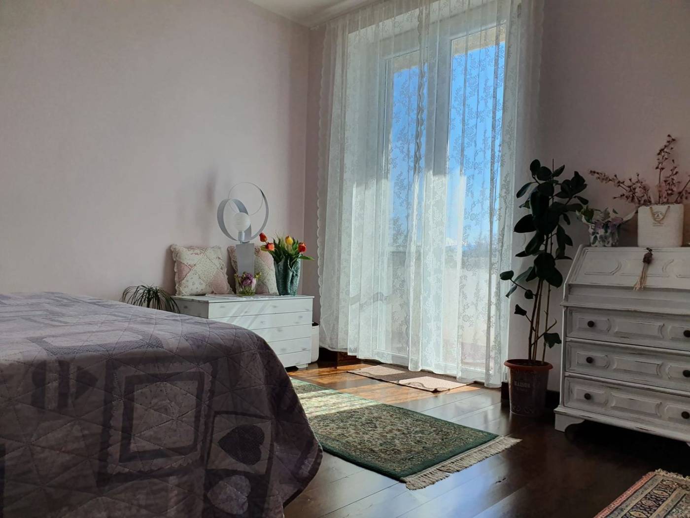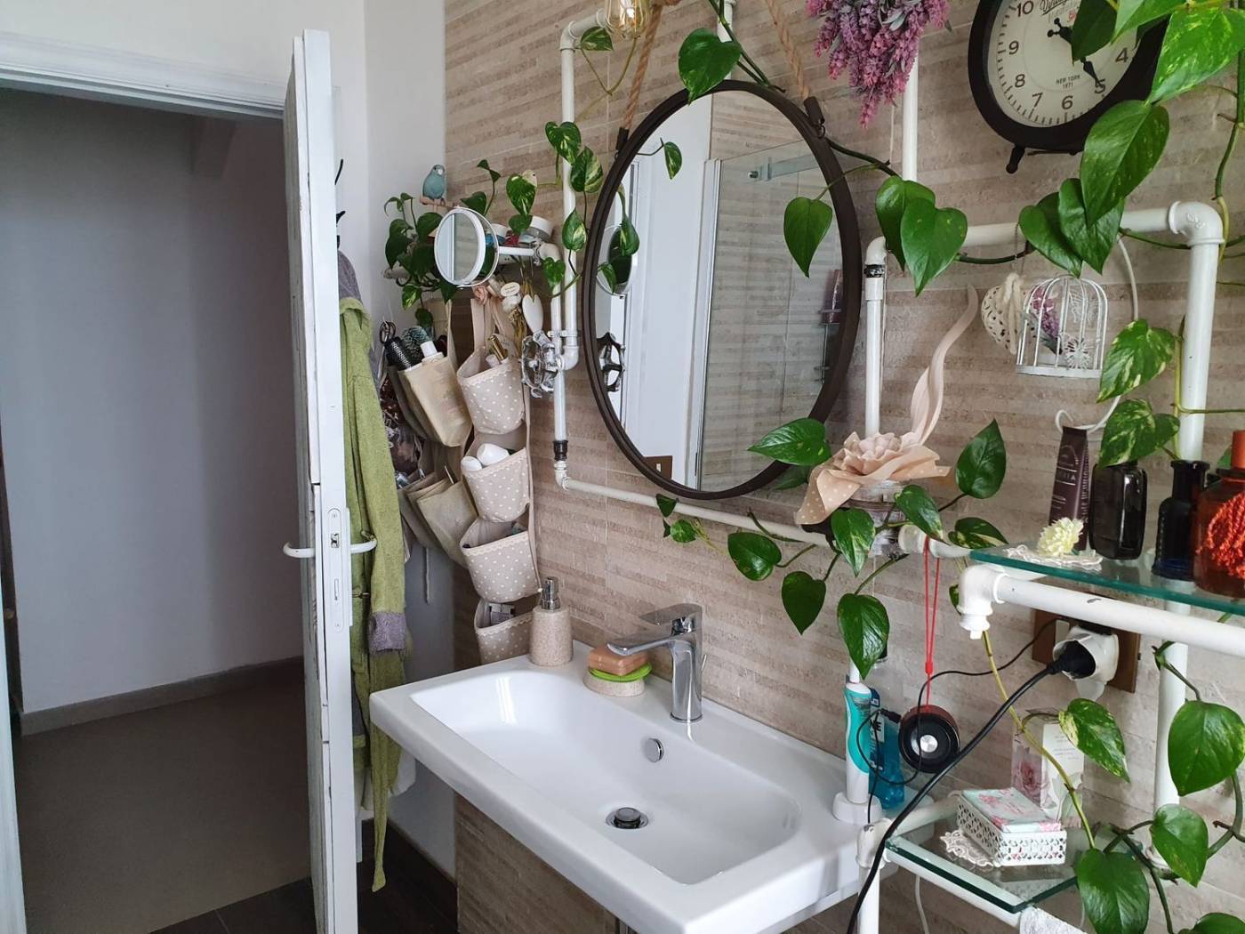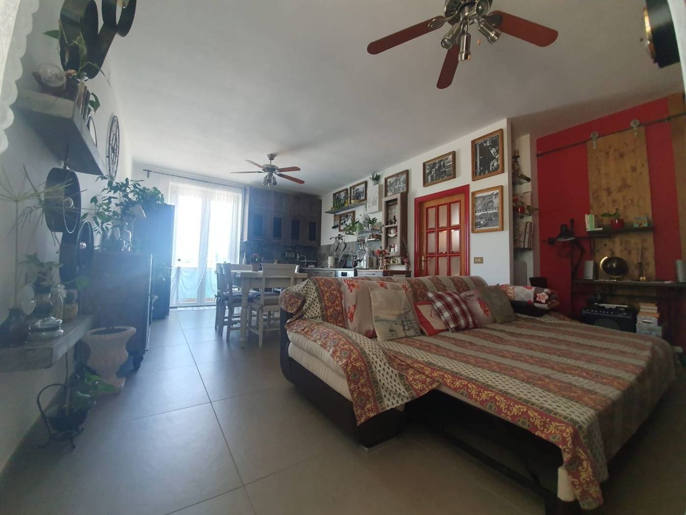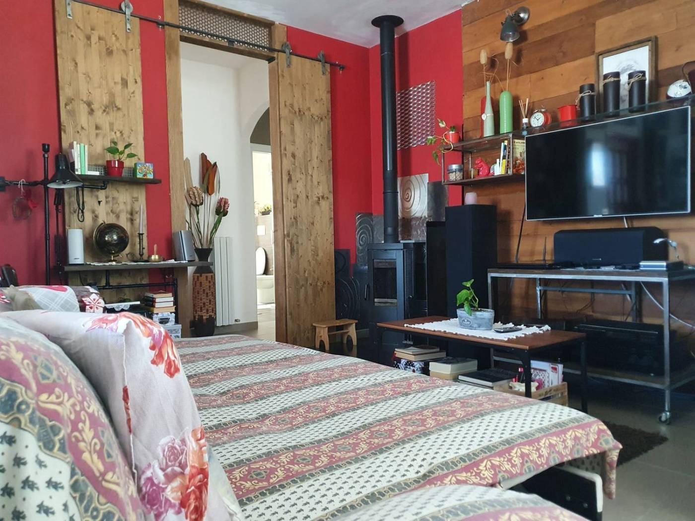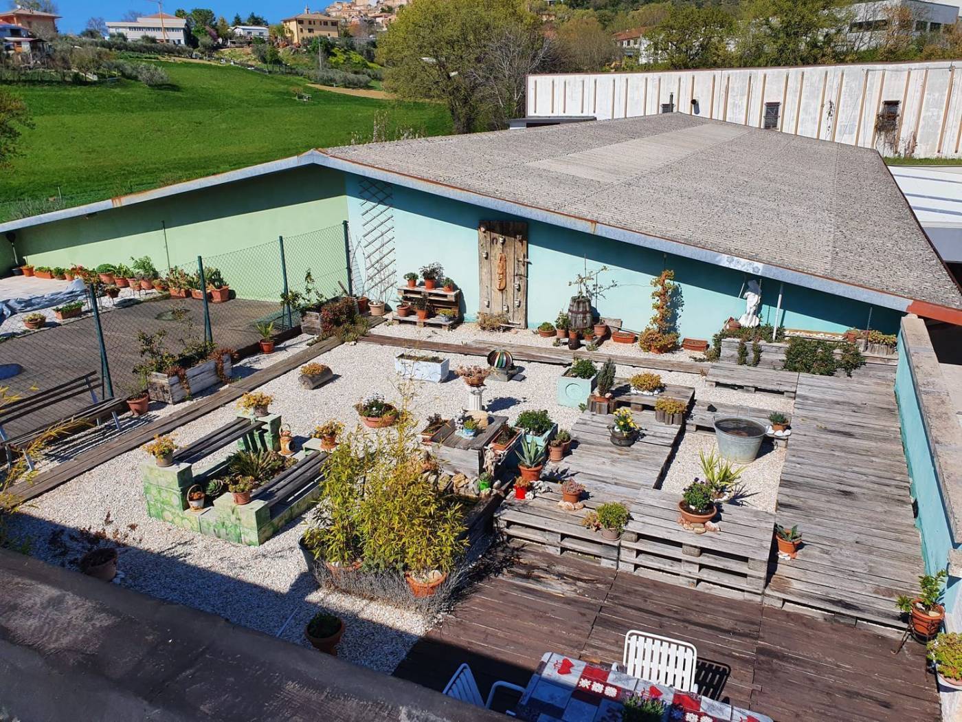 Il CIELO-TERRA si compone di appartamento al primo piano di 75 mq, graziosamente arredato; con design innovativo, interessante uso di materiali comuni riqualificati, crea disegni e accoglienza del tutto unici. Si compone di un'ampia cucina open space, con sala da pranzo e salottino. Molto luminosi, per la presenza di finestre su un lato e di portafinestra sul lato adiacente. Dal salotto si accede poi a un corridoio, passando attraverso una porta scorrevole rigorosamente handmade, per entrare poi in un bagno ricco di luce, moderno, e arredato altrettanto finemente. Lungo lo stesso corridoio troviamo le due camere da letto, una più calda sui toni dell'aranciato, l'altra, matrimoniale, arredata secondo i canoni di più moderno radical chic. A completare il tutto, la chicca: terrazzo, con arredamento contrastante modern-riqualificato.