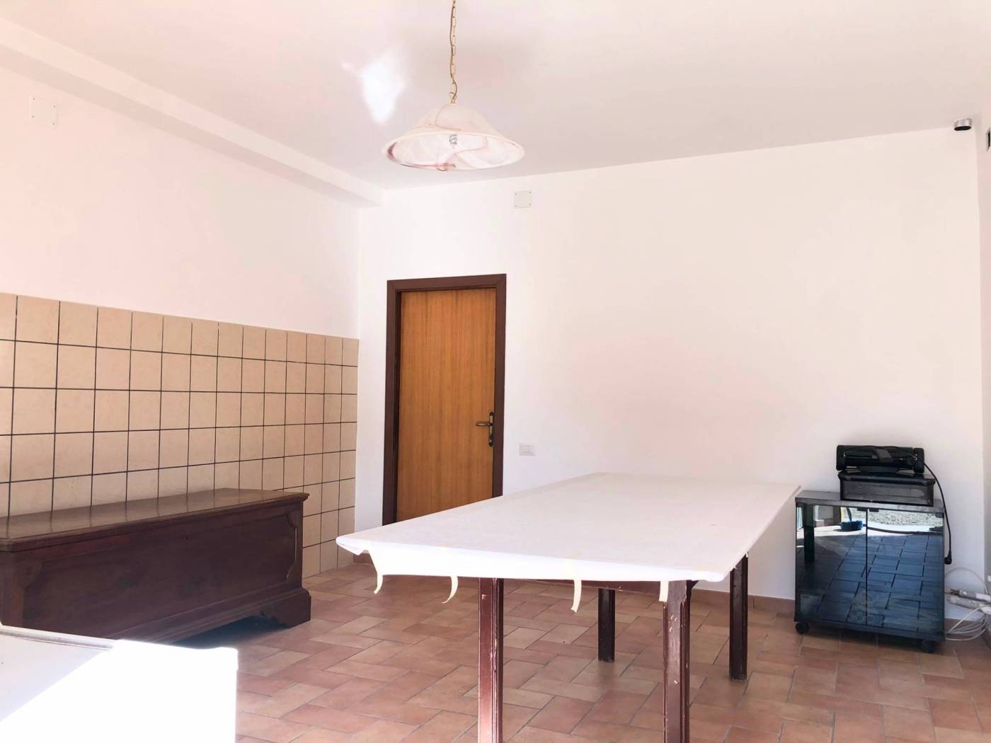 - Al piano terra, dove attraverso l'androne principale possiamo accedere ad un vano adibito a cucina/camera da letto con bagno, due ampi ripostigli e locale di 63 mq ca allo stato grezzo. Collocato sempre all'interno dell'abitazione ma accesso esterno troviamo un garage con doppia porta basculante di 41 mq circa e cantina di 5 mq.