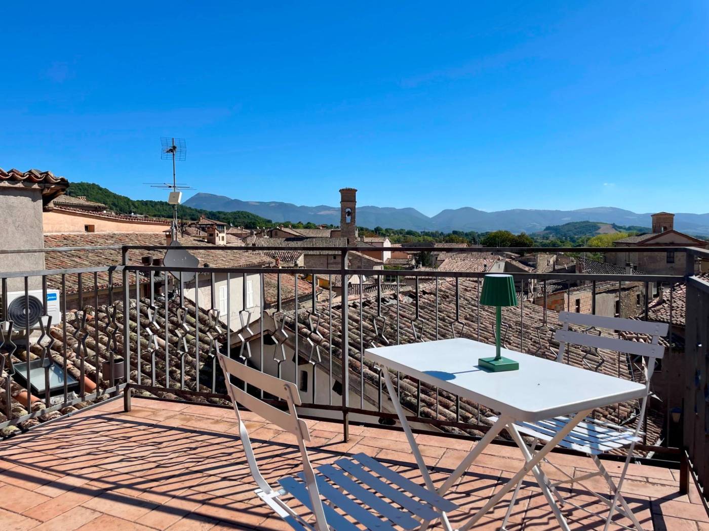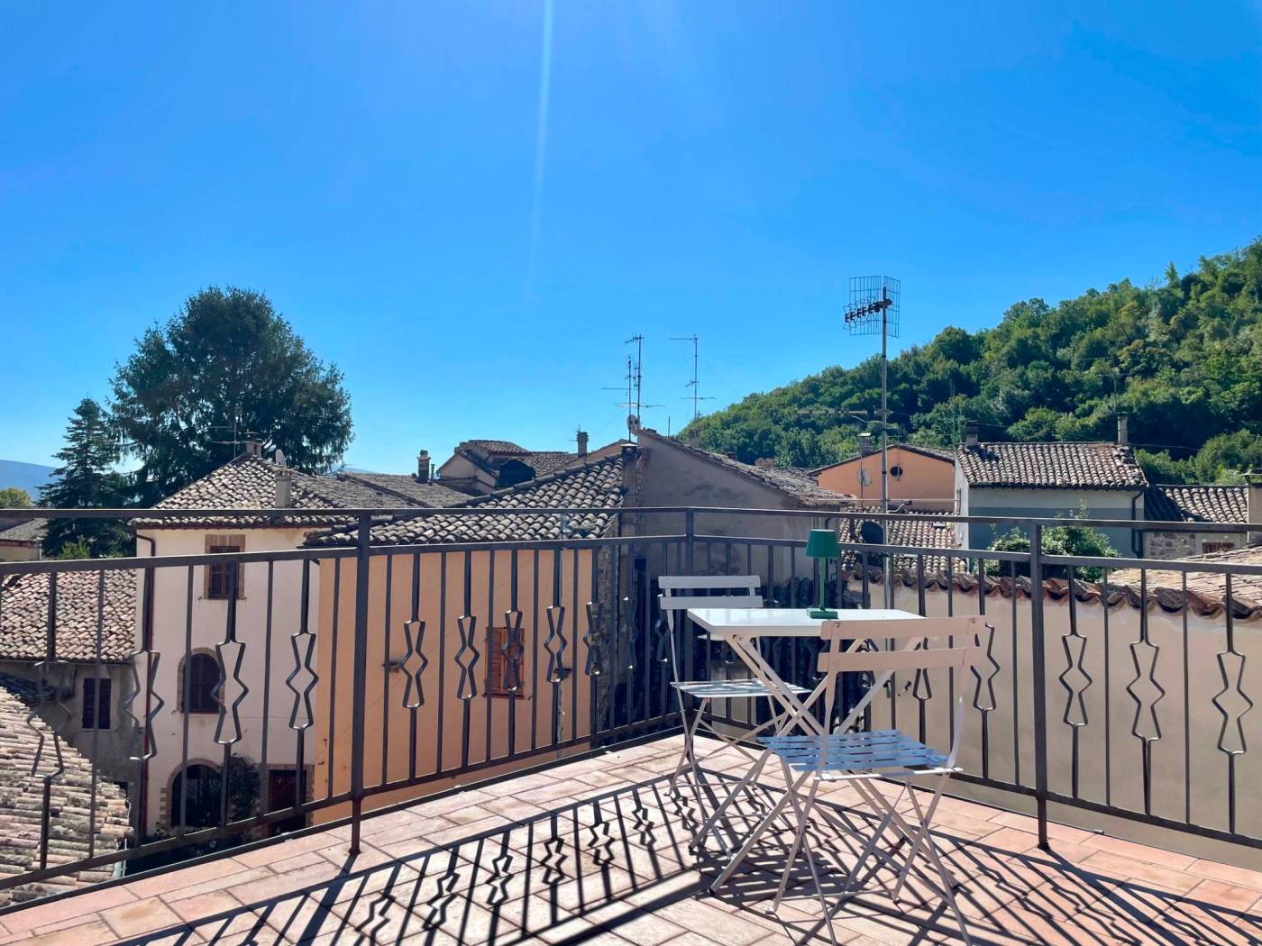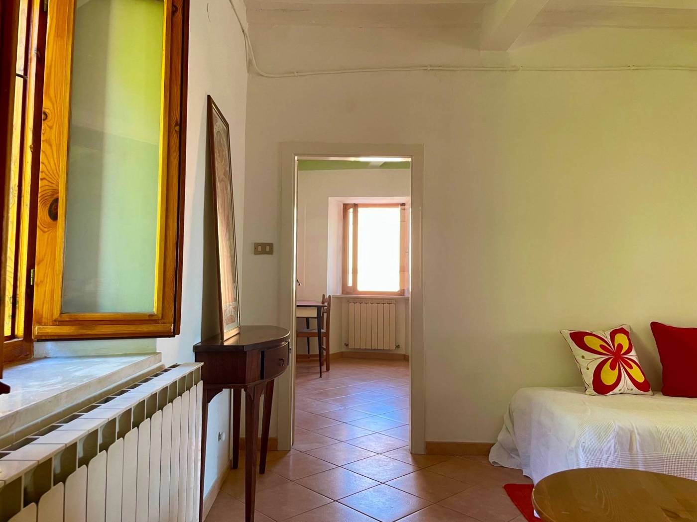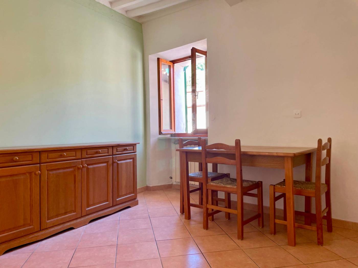Questo appartamento, situato al secondo piano con ingresso indipendente, accoglie con una sala luminosa e il calore del camino. Il cucinotto finestrato e la sala da pranzo conservano il fascino delle case di una volta, mentre dalle scale in legno si sale verso un terrazzo romantico e panoramico, perfetto per sorseggiare un bicchiere di vino al tramonto.