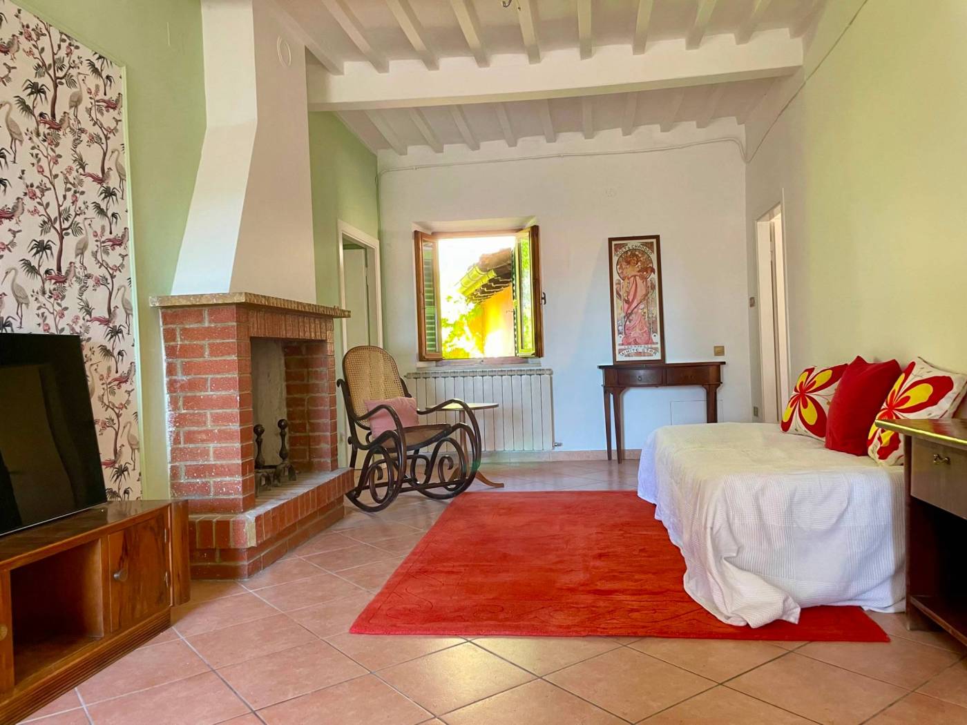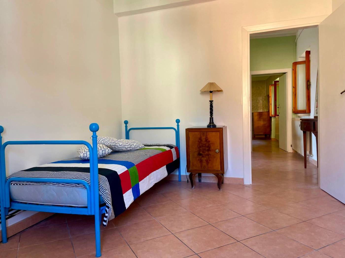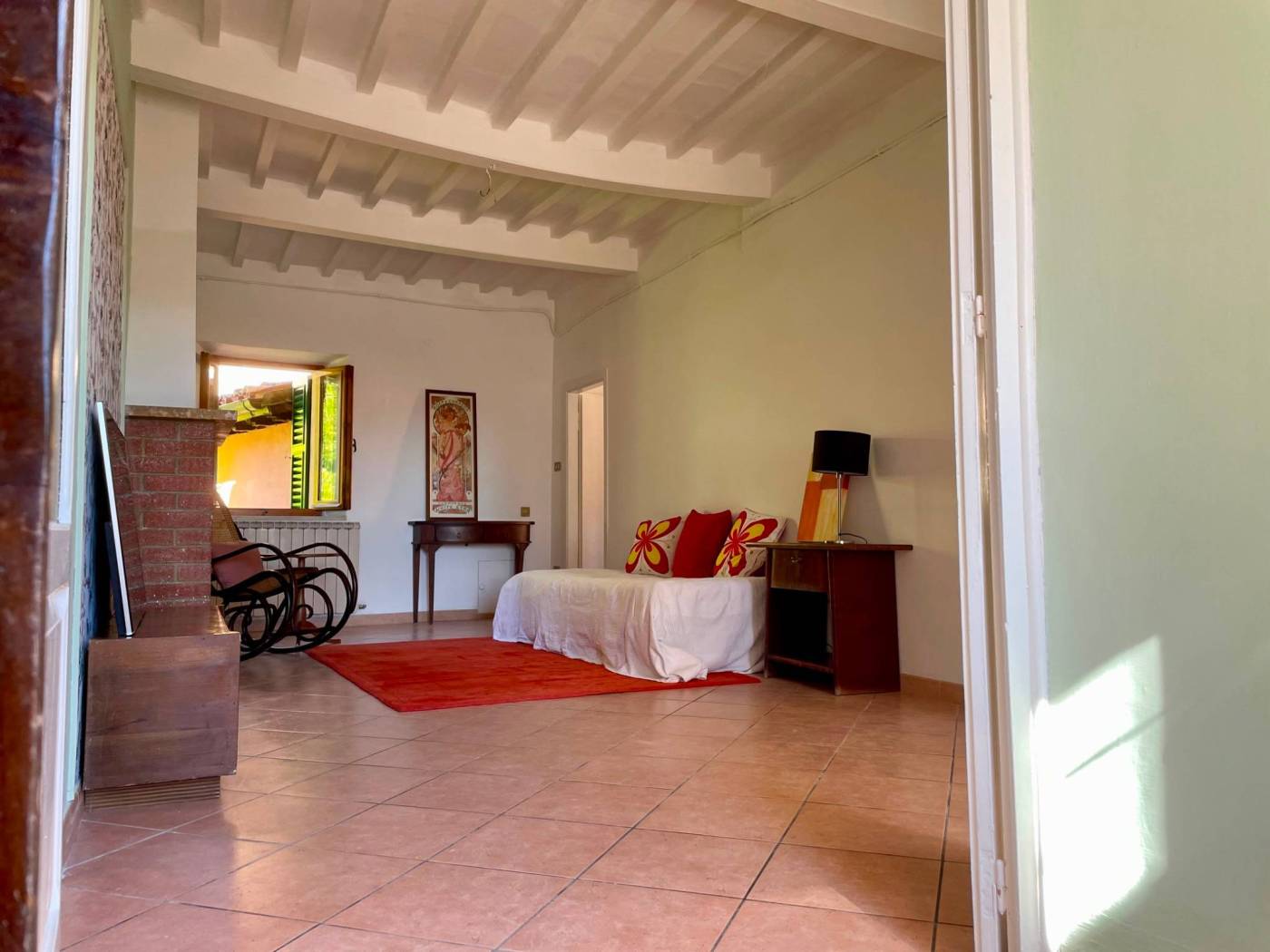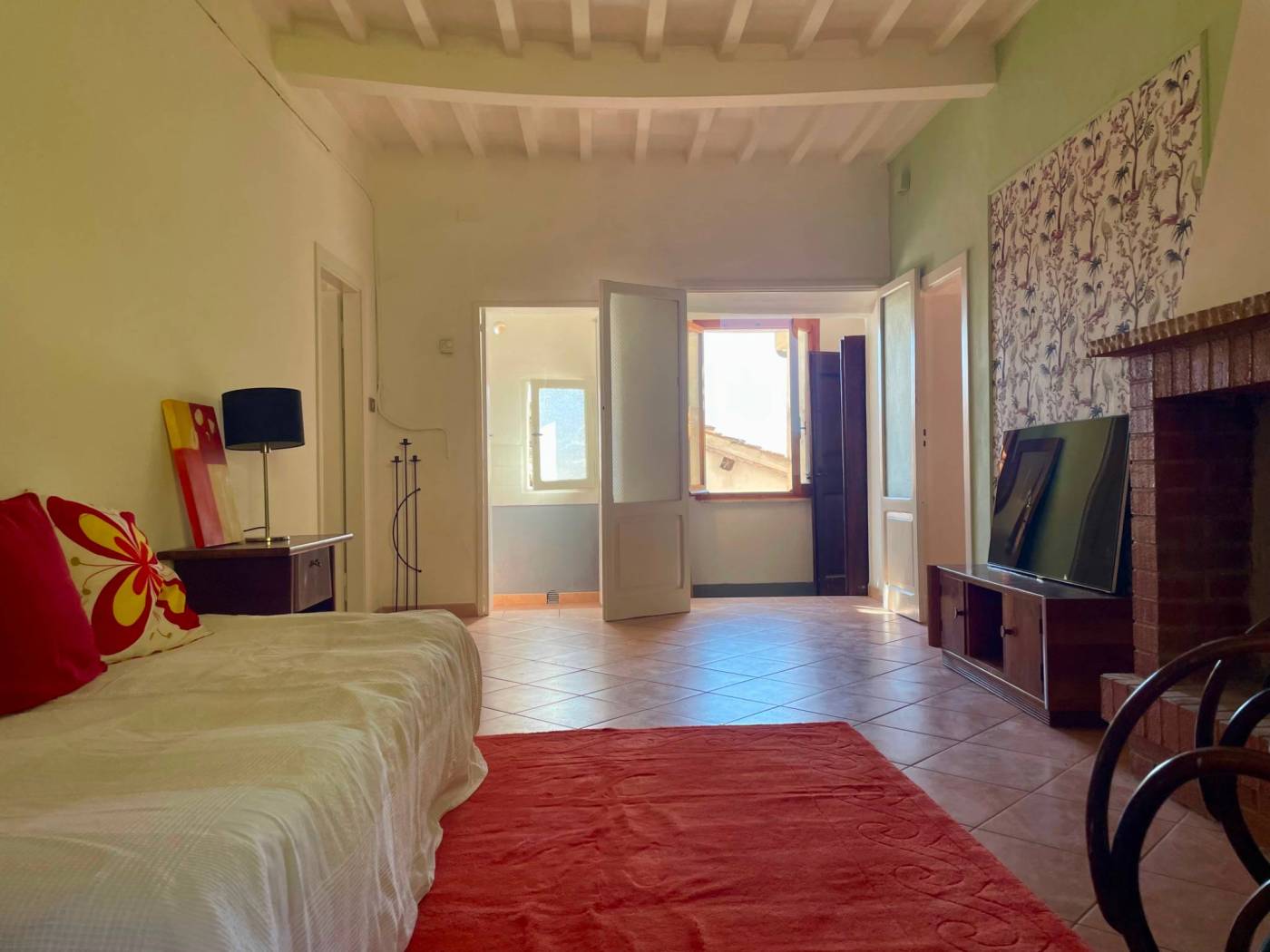 Questo appartamento, situato al secondo piano con ingresso indipendente, accoglie con una sala luminosa e il calore del camino. Il cucinotto finestrato e la sala da pranzo conservano il fascino delle case di una volta, mentre dalle scale in legno si sale verso un terrazzo romantico e panoramico, perfetto per sorseggiare un bicchiere di vino al tramonto.