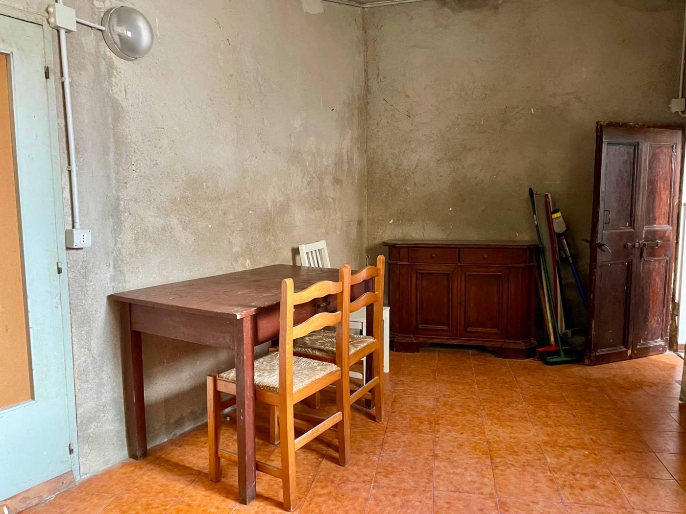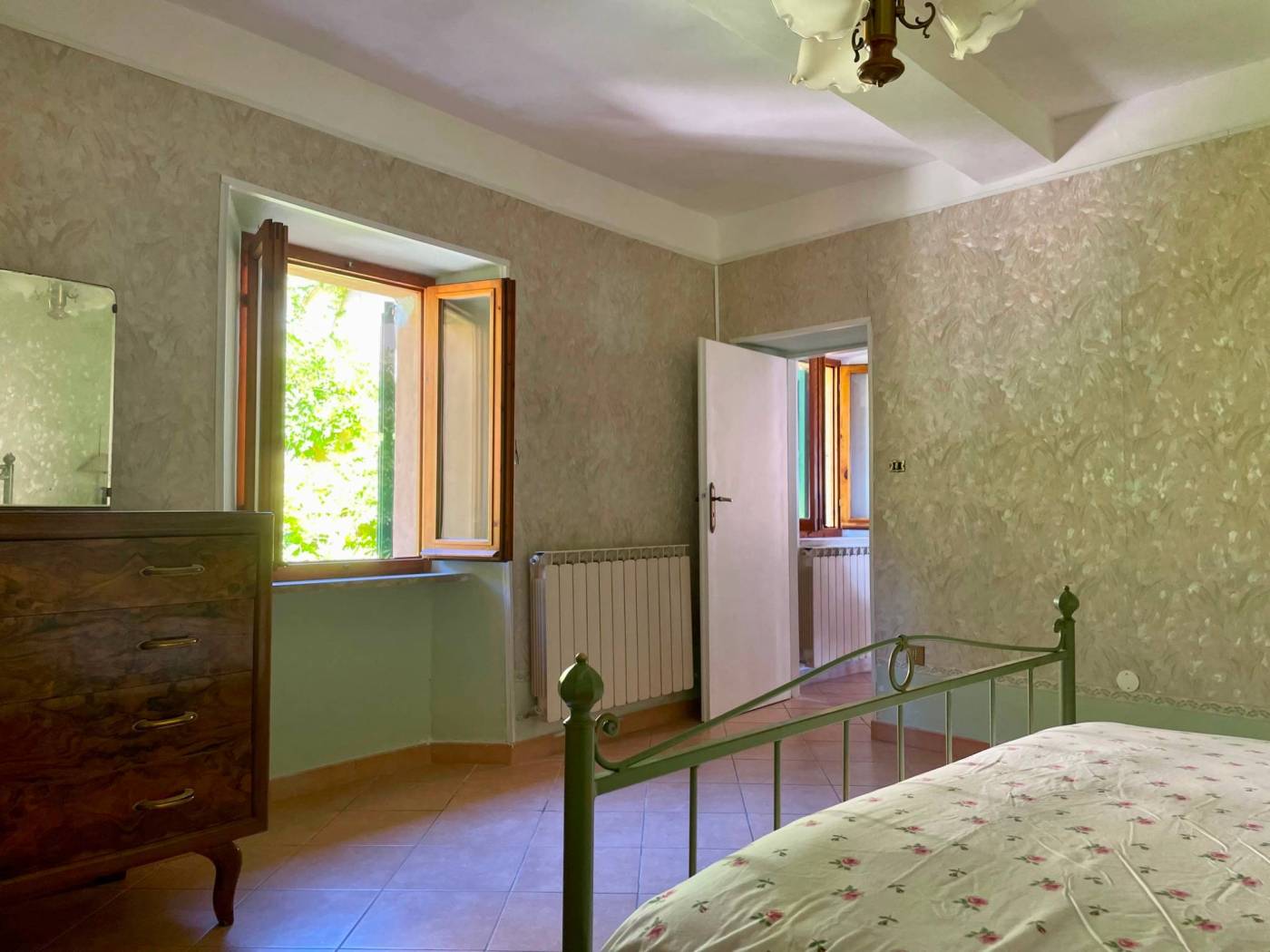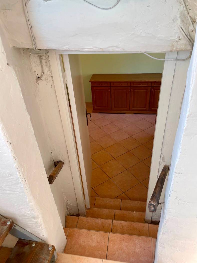 Le due camere da letto, l'antibagno e il bagno offrono funzionalità e comfort, mentre al piano terra troviamo due cantine, un locale rustico con camino e un piccolo cortile privato, spazi che raccontano storie di convivialità e tradizione.
